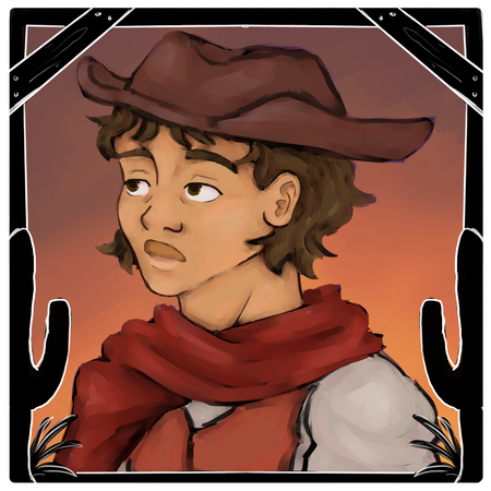 Hel's a cattleman forced into a steampunk world; he used to own a ranch but the town he lived in got gentrified and got forced out and into the city. After a lot of fumbling to his footing, he currently works as a "gun" for one of the major gangs, Steamweavers. Also loves cats.